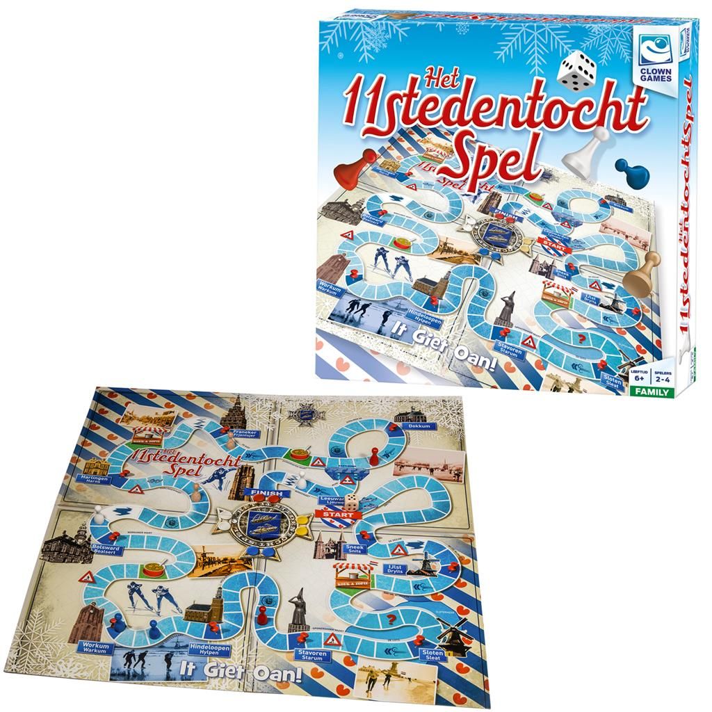 It giet oan! H?t 11-Stedentochtspel. Wie is als eerste bij de finish en wint het felbegeerde elfstedenkruisje? Gooi met de dobbelsteen en verplaats de pion met het aantal ogen dat is gegooid. Wanneer u op ??n van de vakjes komt met een plaatje, voerdan de opdracht uit die bij het plaatje hoort. Als u bijvoorbeeld moet kl?nen, slaat u een beurt over. Of hebt u de wind in de rug en telt uw worp dubbel? De speler die als eerste over de finish komt, wint de Elfstedentocht. En natuurlijk hebben we lekkere hapjes en drankjes toegevoegd om tijdens dit super leuke spel te nuttigen.
