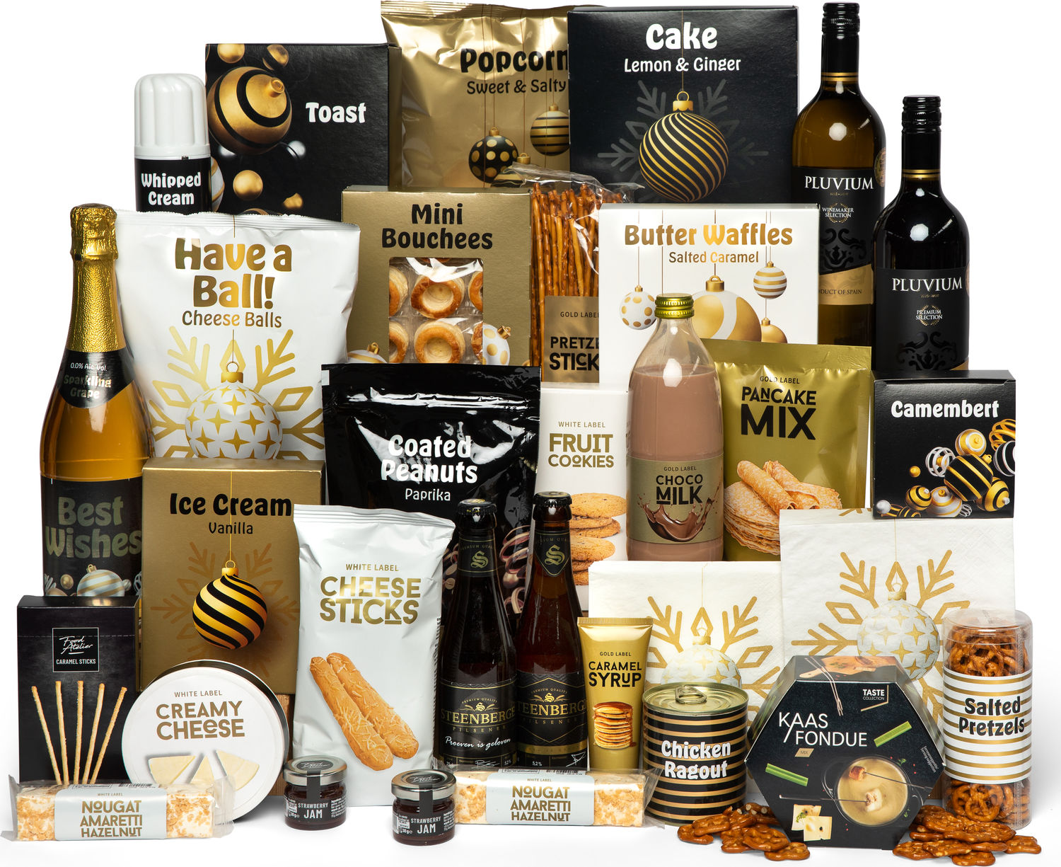 Gezellig samen de feestdagen doorbrengen, dat is waar Kerst en Oud en Nieuw voor staan. En met dit feestelijke pakket zul je niets te kort komen want er is aan iedereen gedacht. Oud en jong, man en vrouw, voor iedereen is er wel iets lekkers. Dat wordt genieten.