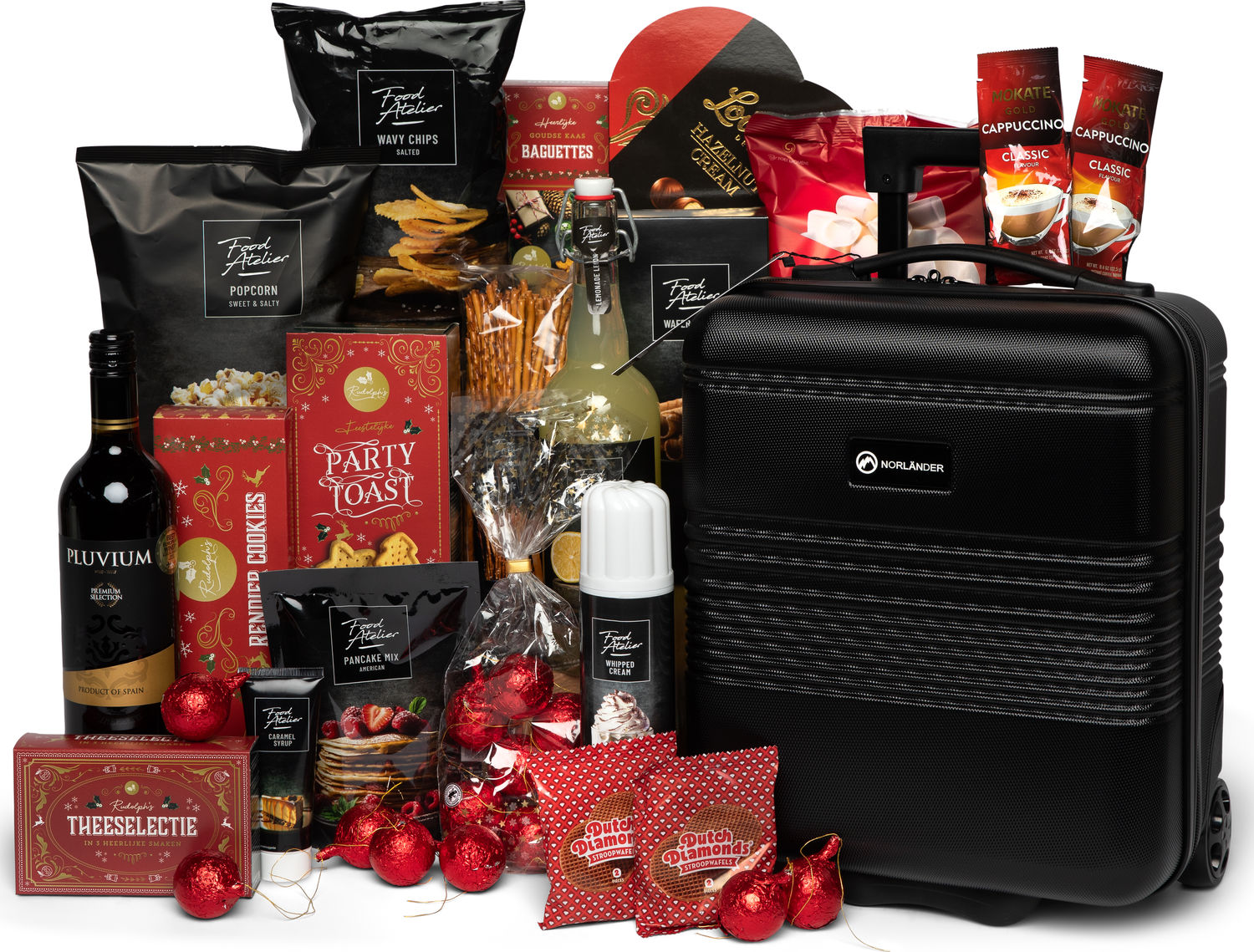 De compacte trolley uit dit sfeervolle pakket is speciaal gemaakt om onder de stoel in het vliegtuig te passen. Hierdoor mag deze trolley mee als handbagage bij alle luchtvaartmaatschappijen. De trolley heeft een uitschuifbare stang en twee luxe soft wieltjes. De binnenzijde bestaat uit een hoofdcompartiment met buckles en een ritsvak. De QR code op de Rudolph verpakkingen verwijst naar een pagina vol tips en instructies van meesterkok Rudolph. Zo maak je thuis in een handomdraai een chef-waardige baksel. Dat wordt culinair genieten met dit rijk gevulde kerstpakket.