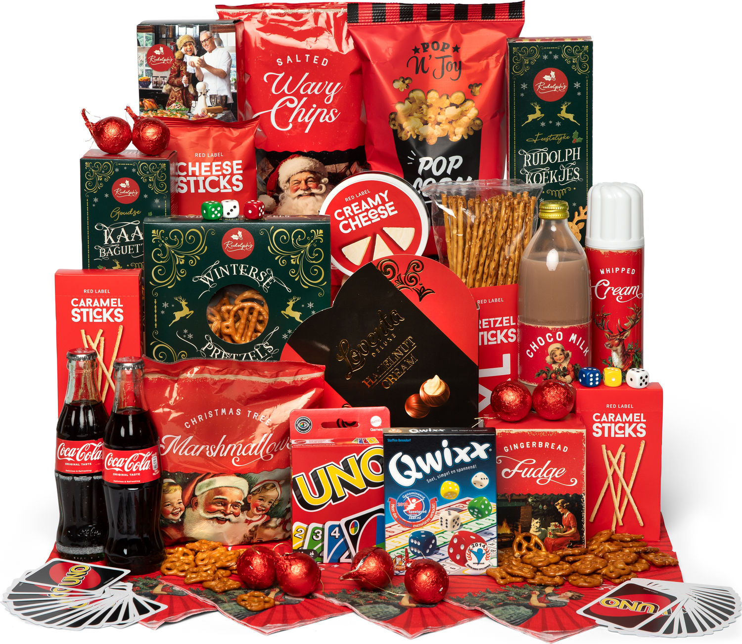 Dit gezellige kerstpakket is superleuk om te geven en te ontvangen. Het bevat naast smaakvolle producten maar liefst 2 spellen om samen te spelen. Uno is het meest gespeelde gezinskaartspel. Probeer als eerste al je kaarten kwijt te raken. Gebruik actiekaarten tegen je tegenspelers, en vergeet niet UNO te roepen als je nog maar één kaart hebt. Bij Qwixx dobbelspel hoef je niet op je beurt wachten. Iemand dobbelt en iedereen kan de worp benutten. Hoe meer getallen je op je scoreblad aankruist, des te meer punten je krijgt. Het Qwixx dobbelspel kan in twee minuten worden uitgelegd en is spannend tot de laatste worp! Dobbel mee en laat je aansteken door de Qwixx-koorts.