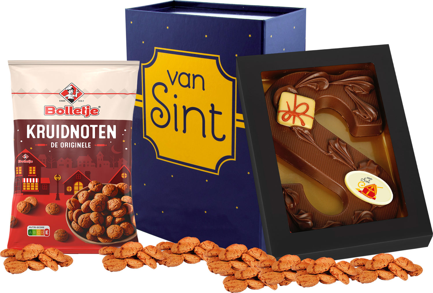 - Luxe blauwe Sint magneetdoos, gesealedĀ (21,5 x 15 x 7 cm) gevuld met: